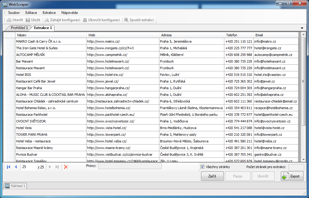 WebScraper je český softvér, ktorý slúži na extrakciu dát z internetu. S jeho pomocou si ľahko vytvoríte vlastný databázy emailov firiem, živnostníkov alebo katalóg produktov.