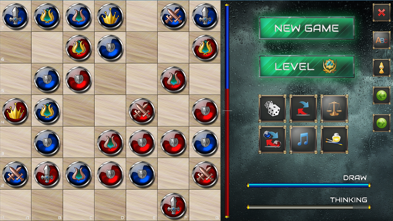 Cieľom hry je zobrať súperovi kráľa. K dispozícii je plocha 7x7, na ktorej je 6 typov figúr. Radový pešiak môže do všetkých strán aj šikmo o 1 pole. Rytier s šikmými mečmi môže o ľubovoľný počet polí, ale len šikmo (ako strelec v šachu). Rytier s krížom môže o ľubovoľný počet polí, ale len ortogonálne (ako veža v šachu). Nižšia lotos (bronzový) môže až o 2 polia ortogonálne, však môže preskakovať ostatné figúry. Vyššia lotos (zlatý) môže až o 3 polia ortogonálne, tiež s preskakovaním figúr Kráľ môže do všetkých smerov o 1 pole, ale nie späť; nemôže nikoho zobrať (môže sa len uhýbať). Figúry sa môžu navzájom vyraďovať. Remíza nastane, ak počas 10 ťahov nedôjde k vyradeniu žiadne figúry.Príspevkov: 0