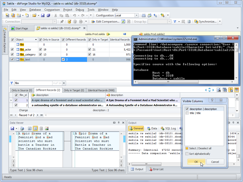 Parametre programu dbForge Studio for MySQL 6.2.280