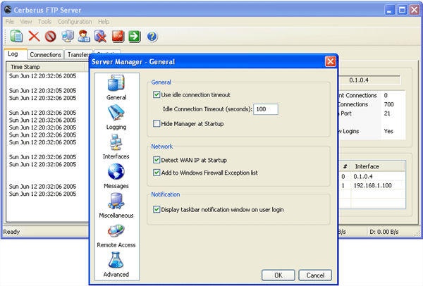 Parametre programu Cerberus FTP Server 8.0.0.5