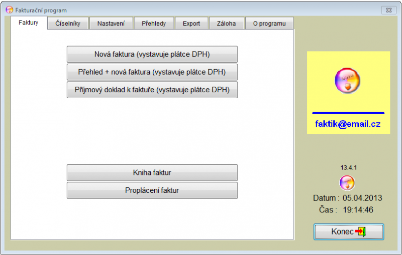 Možnosť sieťovej prevádzky. Súčasťou programu sú mnohé prehľady s možnosťou tlače, vrátane tlače príjmových dokladov k faktúram a vykonávanie čiastočných úhrad. Program je podporovaný číselníky pre uľahčenie práce. Môžete vytvárať klasické faktúry, zálohové faktúry, dobropisy. Faktúry môžete vystavovať s ľubovoľnou menou, nie len českej koruny CZK.