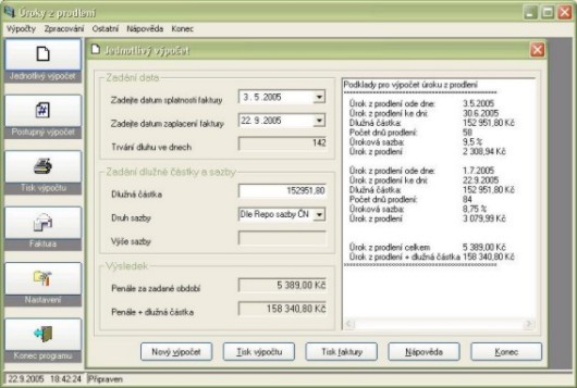 Program pre výpočet zákonných aj zmluvných úrokov a poplatkov z omeškania
