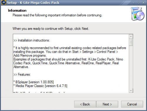 Parametre programu K-Lite Mega Codec Pack 15.7.0