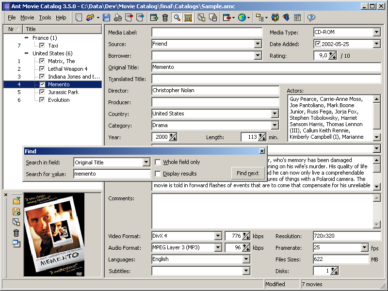 Parametre programu Ant Movie Catalog 4.2.0.2