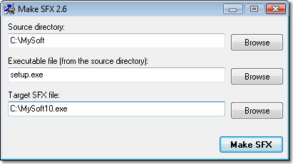 - Vyberte zdrojovú priečinok obsahujúci súbory, ktoré chcete zabaliť do SFX modulu.